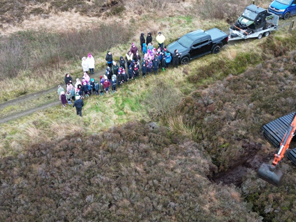 The team also recently welcomed pupils from the nearby St.Brigid’s Primary School Mountfield near Omagh to come and see restoration in action at the site and then to learn in the classroom about the importance of peatlands for water quality, biodiversity and climate change.